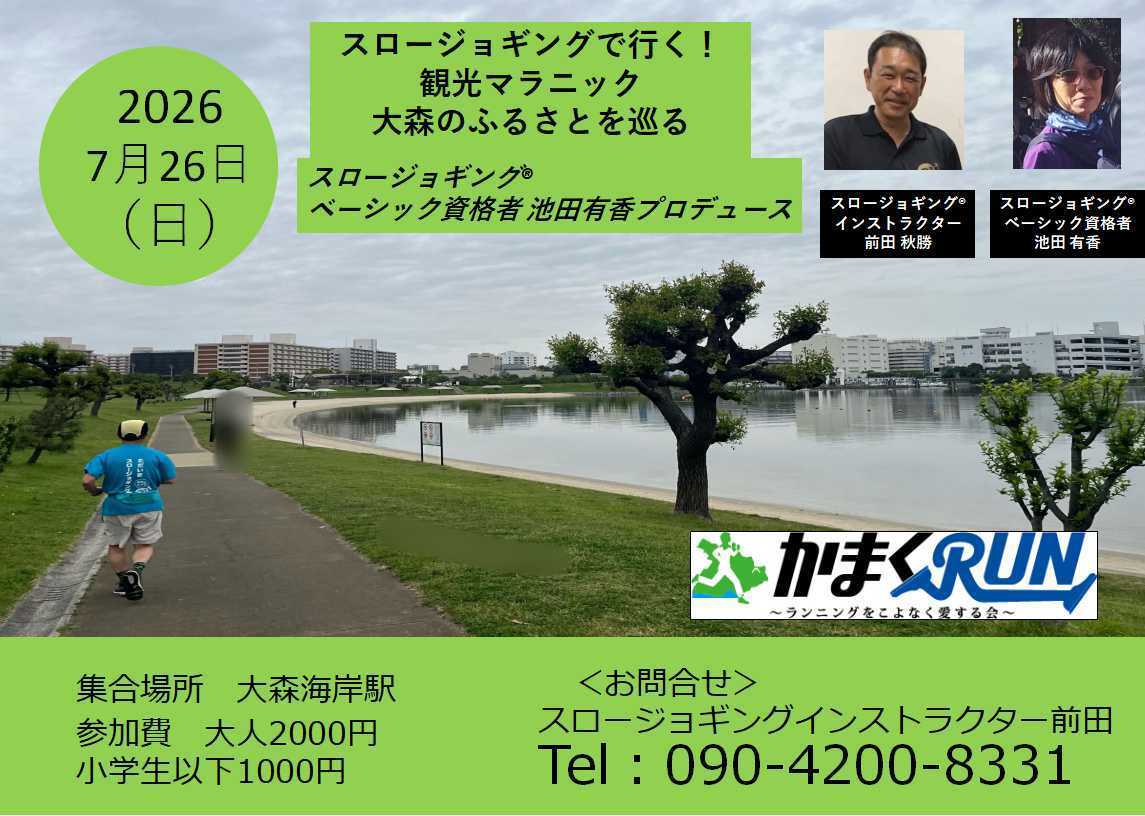 京浜急行 大森海岸駅(0.0km) →大森北公園(0.2km)→磐井神社(0.3km)→旧東海道の碑(1.0km)→クレセントアンドモーリー(ベーカリー)(1.2km)→平和島公園 ひょうたん池(1.4km)→平和の森公園 梅林(1.7km)→平和島公園 野球場入口(2.4km)→大田区青少年交流センター ゆいっつ(2.8km)→平和島公園キャンプ場(3.2km)→平和島公園 フィールドアスレチック(3.6km)→大森 海苔のふるさと館(4.0km)→浜辺橋(4.2km)→大森ふるさとの浜辺公園レストハウス(軽食・休憩)(4.3km)→大森ふるさとの浜辺公園(4.5km)→貴船堀橋(4.8km)→見晴らし橋公園(4.9km)→旧呑川緑地(5.2km)→ローソン大田大森東四丁目店(6.2km)→タケウチ製パン(6.5km)→梅屋敷東通り(6.5km)→仙六屋カフェ(クリームモナカ)(7.3km)→京浜急行 梅屋敷駅(7.5km)