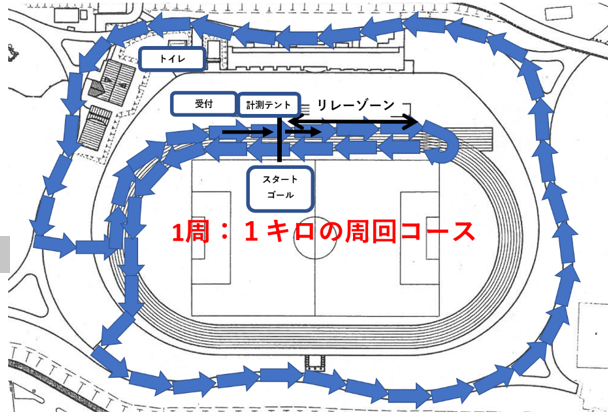 | 競技ルール | ■親子ラン(1キロ) ・1組2名でコースを1周(1キロ)走行します。 ■リレーマラソン(2時間) ・2時間以内に1周(1キロ)を何周走れるか競います。